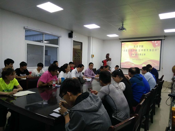 2017年5月24日晚7:00,信阳师范学院体育学院“决胜全面小康,让中原更加出彩”党员微党课比赛在体育学院会议室如期举行。比赛由体育学院党委副书记王中磊主持,体育学院全体党委成员,教工党员、学生党员代表共同观看了比赛。王显、鲁枝鑫、张道启、王贺、冯硕五位教工党员参加了比赛。