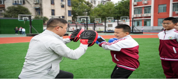 10月11日下午,信阳师范大学体育学院研究生导师黄新恒博士,在胜利路小学开展以“习民族传统项目,育中华优秀美德”为主题的武术进校园体验活动。