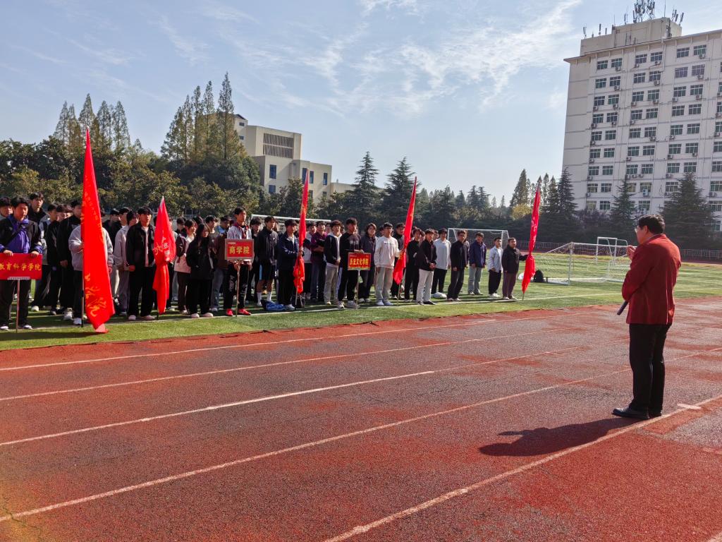 为欢迎2025级新生入学,丰富校园体育文化生活,增强学生体质,培养团队协作意识,11月11日中午,信阳师范大学第三届“迎新杯”足球赛开幕式在学校西操场举行。体育学院党委副书记柴九昌,商学院团委老师盛海,地理科学学院团委老师张议月,体育学院团委老师唐娟、李勇、姜金旭出席开幕式,各参赛队队员、教练员及学生代表共200余人参加活动。