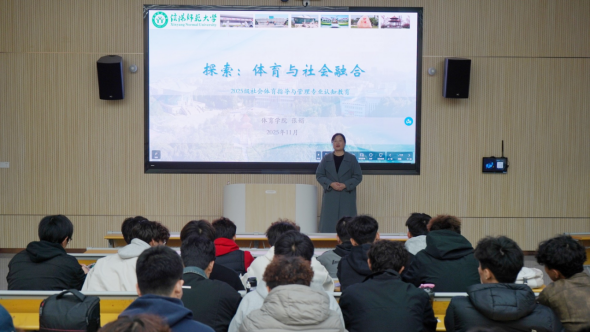 11月11日,体育学院副院长张娟在淮河校区实验楼301开展题为“探索:体育与社会融合”社会体育指导与管理专业认知教育讲座,2025级社会体育指导与管理班的班主任孙长铎和全体同学参加。