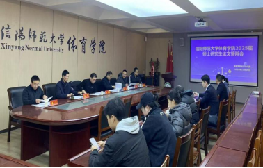 2025年11月28日,信阳师范大学体育学院2025年秋期硕士研究生学位论文答辩会在学院407会议室顺利举行。来自体育专业三名硕士研究生依次就各自的学位论文进行了汇报与答辩,现场学术氛围浓厚、交流深入充分。